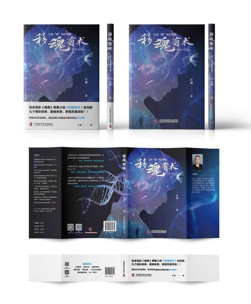 《缉魂》上映之后,中国科学技术出版社以最快速度重新出版了《移魂有术》中短篇合集。封面上写着“包含电影《缉魂》原著小说《移魂有术》在内的九个精彩故事,重磅来袭,穿透灵魂深处”,背景中,一个低头沉思的人物剪影融入DNA双螺旋结构和浩瀚星空里,并没有使用《缉魂》的剧照。尽管有了电影光环加持,但小说还是小说。