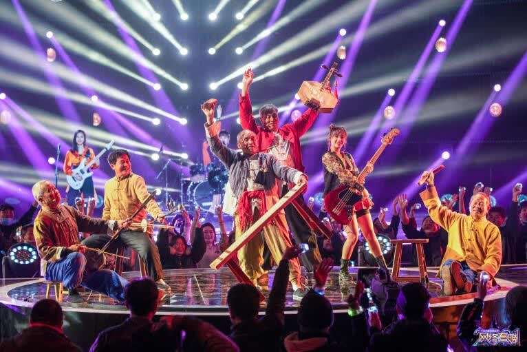 “国乐大师”方锦龙与B站百万UP主“机智的党妹”、网络红人潇公子同台上演跨次元大秀《开新节拍一起嗨》。方锦龙更是首次带来一把蓝色眩光电琵琶,二次元风效果拉满。同样混搭的还有高亢豪迈的华阴老腔传承人与爆发力十足的844女子摇滚乐队,一首《九九八十一》引爆全场。中国歌剧舞剧院青年舞蹈家王家鑫演绎《王者荣耀》真人版公孙离,艳惊四座的汉唐舞,裸眼3D的舞台效果,真人加CG演绎破次元共舞。