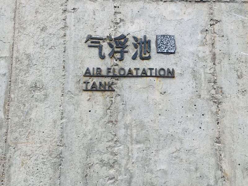 气浮池为原上海制皂厂环保科的污水净化池的一部分,运用大量微气泡捕捉吸附细小颗粒胶黏物,使之上浮,达到固液分离的效果。