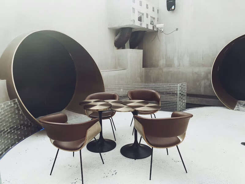 设计师巧妙运用了很多“圆形”的几何图案,让整个空间沉浸在与“泡泡”有关的情境里,同时也保留了遗址的年代感和工业风格。