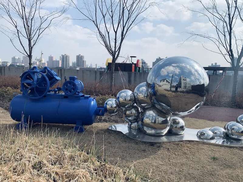 过去使用过的设备被改造成了艺术装置。
