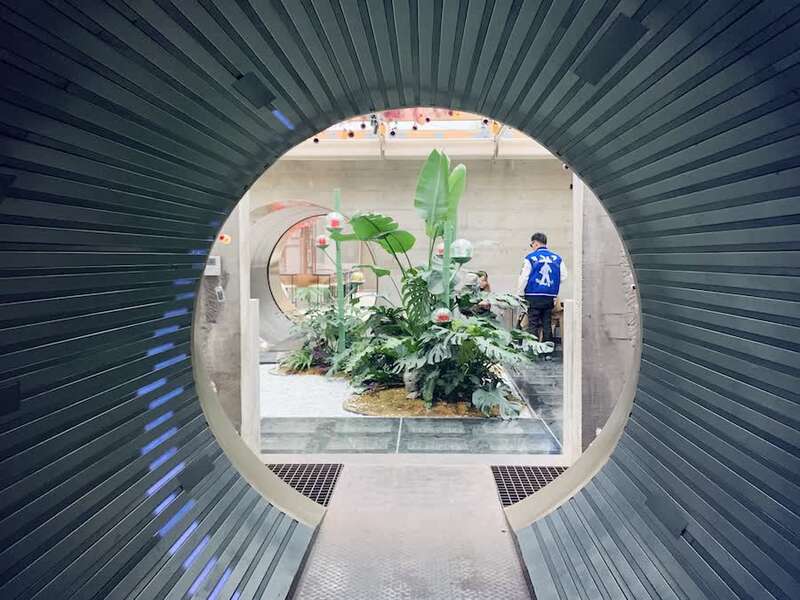 过去连通不同生产池的圆形管道被改造成了“时光隧道”。