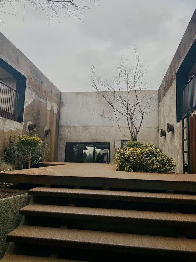咖啡馆的主体建筑位于地下一层,仔细留意建筑的外墙,你会发现很多“奇怪”的文字标识:中压水解楼、格栅池、生物转盘池、气浮池、次氯酸钠池、观测楼……它们都是制皂厂内各个生产车间的名字。