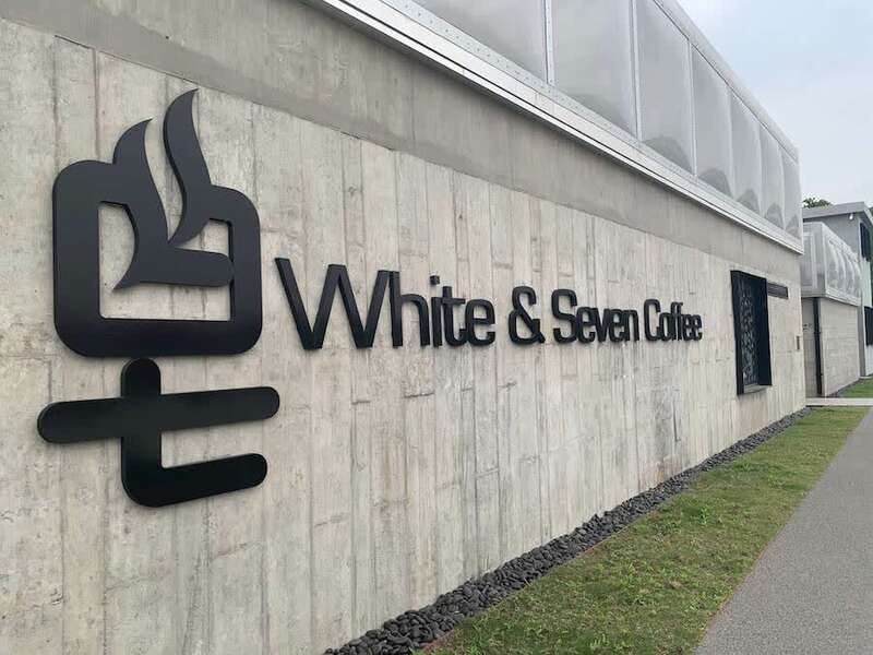从杨树浦路拐入平定路,一直走到江边,沿着滨江步道行走不到5分钟,一栋带有半透明屋顶的灰色水泥建筑出现在眼前,这就是“白七咖啡馆(White &Seven Coffee)”。
