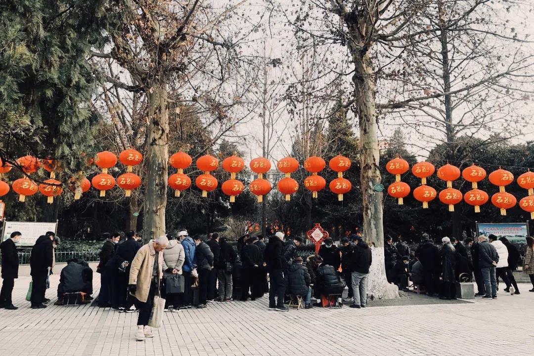 过年前,人民广场的氛围担当——棋手老大爷们和红灯笼一决高下。
