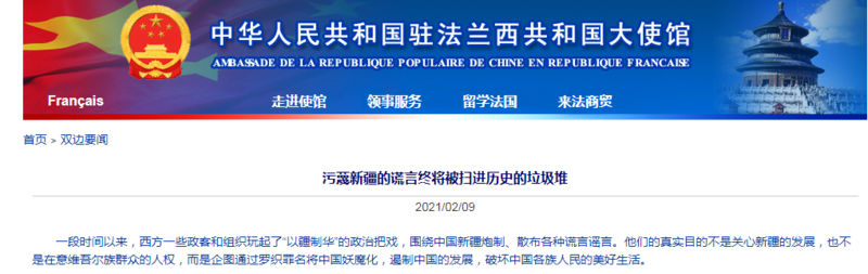 曾两度访疆的法国作家马克西姆·维瓦斯在其著作《维吾尔族假新闻的终结》一书中,深刻剖析了个别西方国家和媒体炒作新疆问题的惯用手法。比如,美国中情局和国家民主基金会通过“人权观察”、世维会等非政府组织策划实施反华活动,为其涉疆谎言披上“自由”、“人权”的神圣外衣;郑国恩、葛特曼等所谓新疆问题专家用“移花接木”、“断章取义”、“模糊指控”、“杜撰篡改”等方式捏造涉疆谎言;BBC、自由亚洲电台、法国解放报等西方媒体以偏概全、有罪推定,通过采信、传播个别维族人士不负责任的言论来抹黑中国形象;西方媒体只分敌我、不看对错,几乎逢中必反,狂热地散播涉华虚假信息。