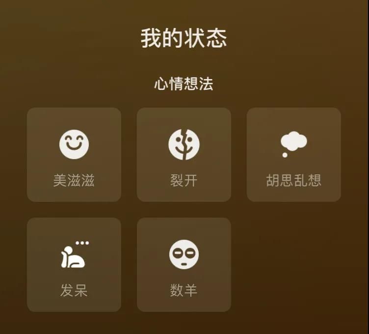 美滋滋、裂开、胡思乱想、发呆、数羊、搬砖、沉迷学习、忙、摸鱼、开会、出差、打卡……感觉可以涵盖平常生活的一切情绪和状态。