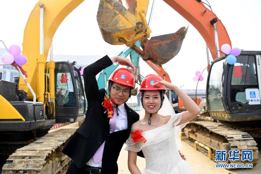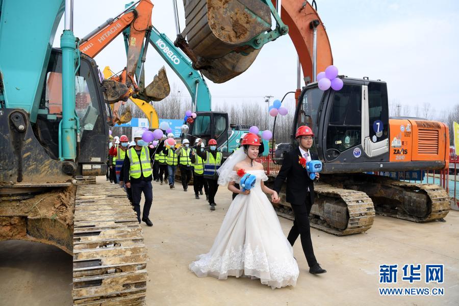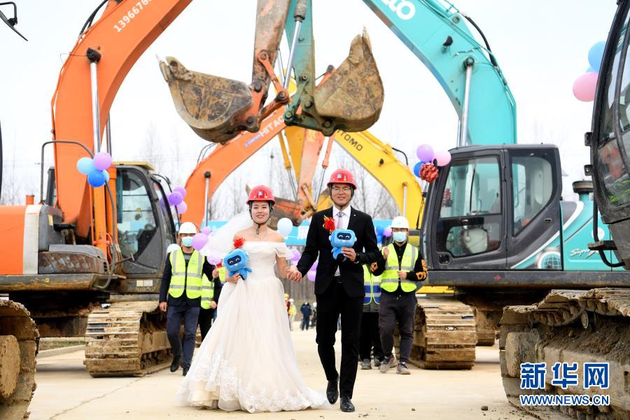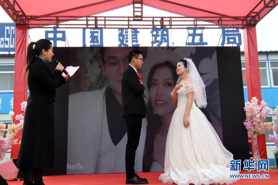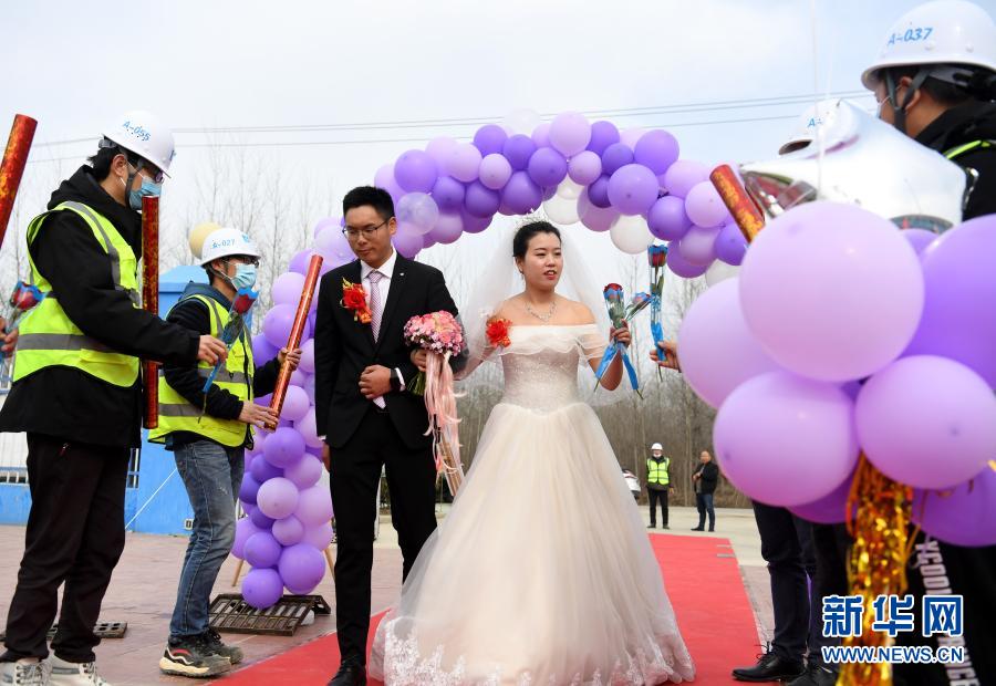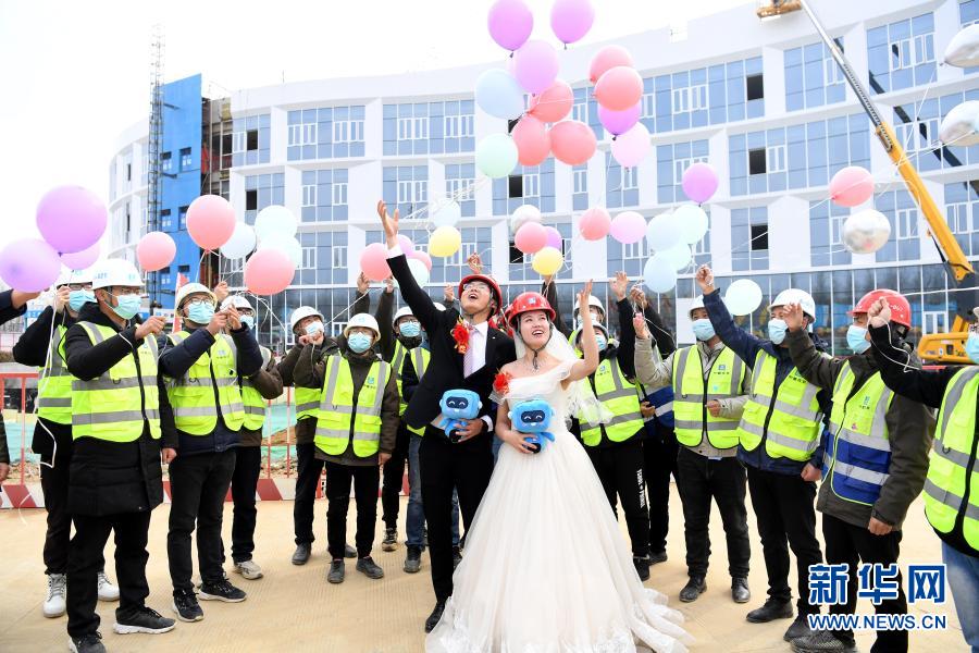 2月8日,蒋吉丰和爱人张小菊在项目工地举办婚礼。新华社记者 刘军喜 摄