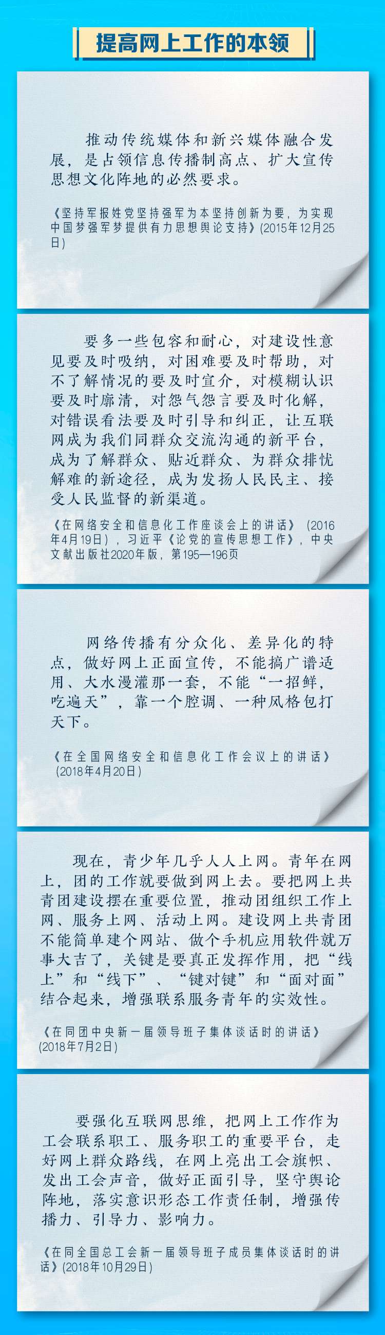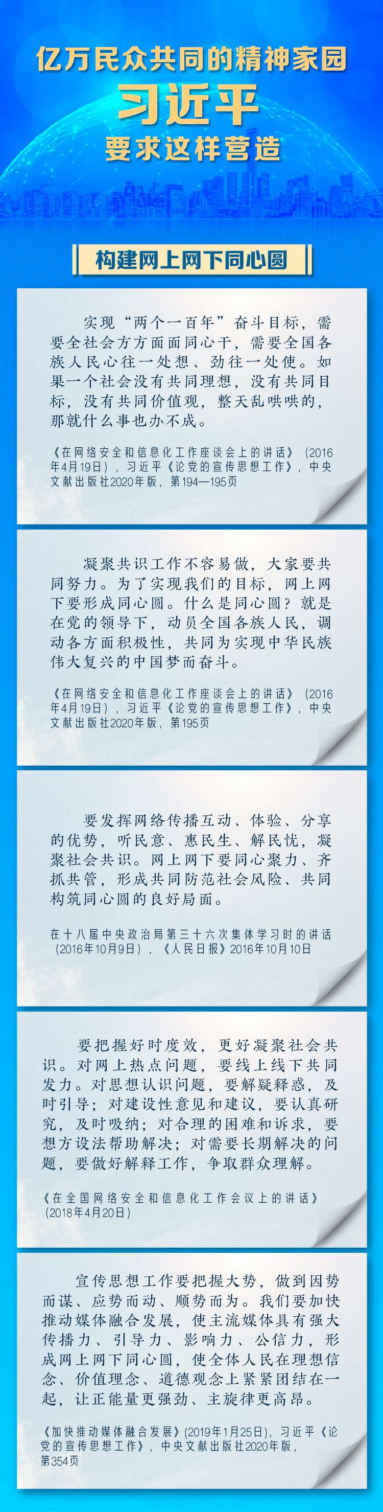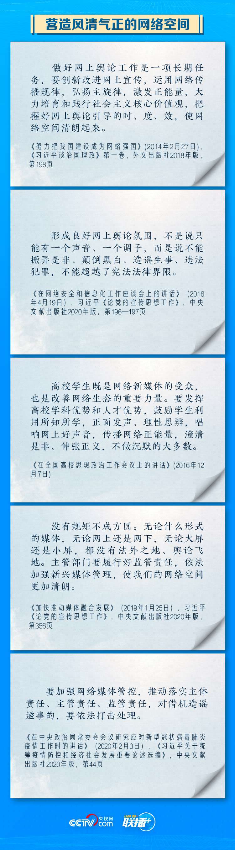 “网络空间是亿万民众共同的精神家园。网络空间天朗气清、生态良好,符合人民利益。网络空间乌烟瘴气、生态恶化,不符合人民利益。”