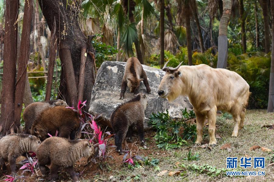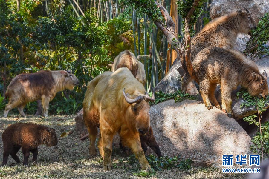 广州长隆野生动物世界的金毛羚牛家族春节前搬进金牛岭新家(2月8日摄)。新华社记者 刘大伟 摄