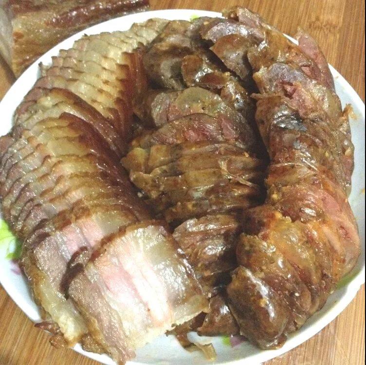 肥瘦相间的腊肉表皮金黄,内里红白分明,一口下去,肥肉不腻,瘦肉不柴,两相得宜。甚至你能感受到松柏燃烧时的烟熏味在你鼻尖萦绕。肉里的酒香、咸香都随着岁月的沉淀越发醇厚。