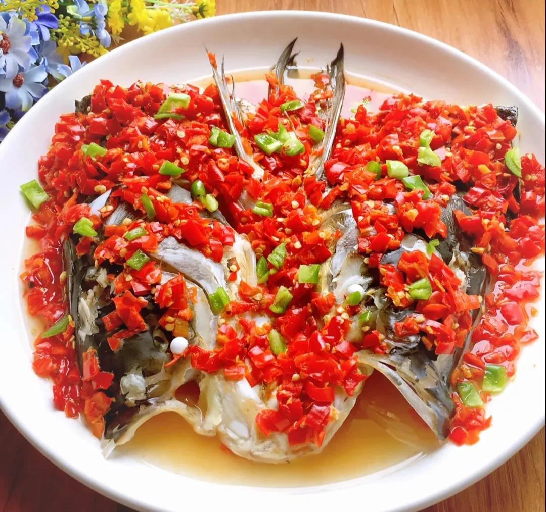 鱼头平铺,盖上满满一层剁椒,汤汁浓郁,鱼头细嫩,满满的幸福感油然而生。