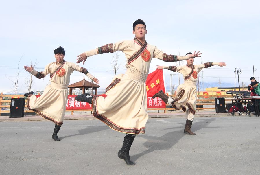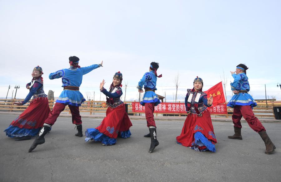 农历除夕当天,新疆和布克赛尔蒙古自治县的乌兰牧骑来到铁布肯乌散乡查干阿德尔格村,为村民送上《我们的中国梦·文化进万家》春节七天乐系列文化下乡文艺演出。