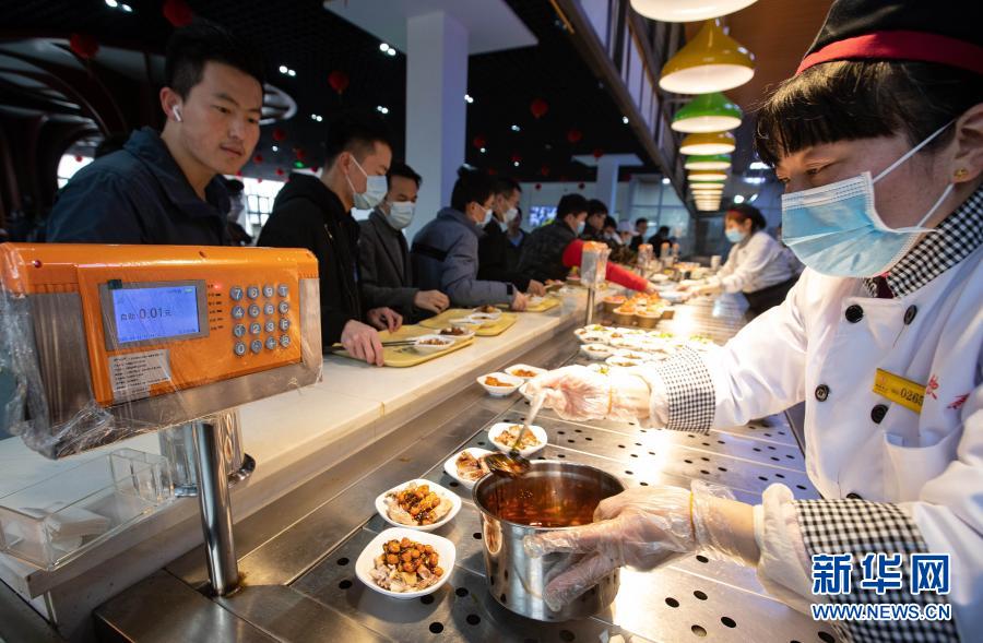 2月11日,在四川大学望江校区东二食堂,工作人员为就餐师生服务。新华社记者 江宏景 摄。