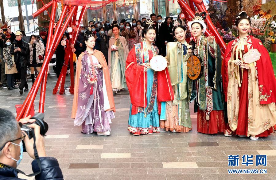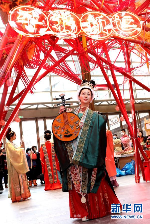 2月12日,表演者在上海新天地街区展示古典服饰。