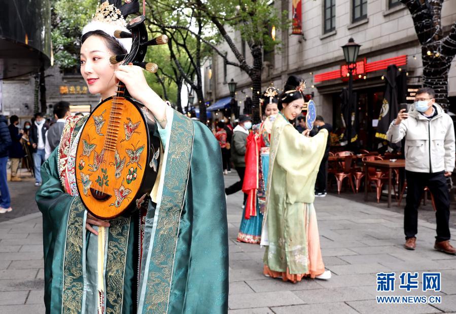 当日是农历大年初一,上海新天地举行国风汉服主题巡游和手作工坊亲子系列活动。