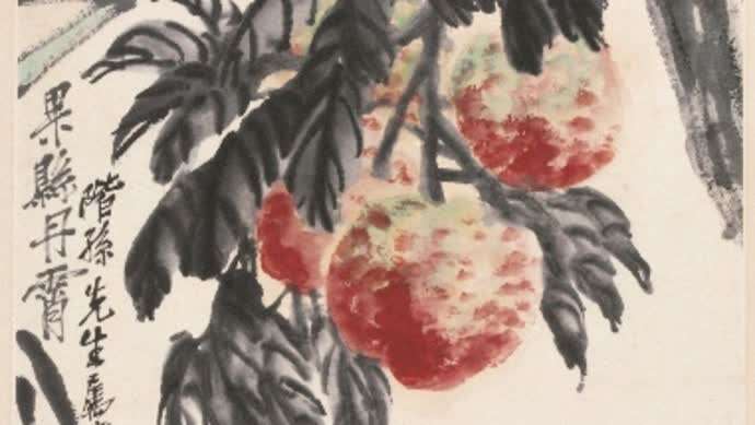 吴昌硕在技法上一改传统文人画一味强调清雅,大胆引入西洋红与国画中的赭石花青互相辉映,呈现临摹对象的浓厚妍丽,浑然天成。其大红大绿、大俗大雅的金石重彩大写意绘画,造就了海派雅俗共赏、大气谦和的艺术风格。