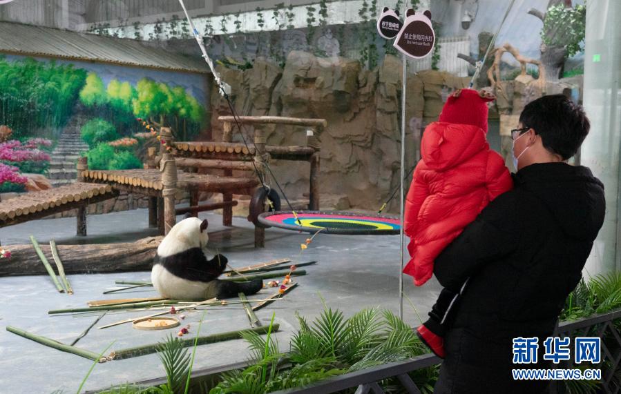 当日是大年初一,不少游客来到青海省西宁市青藏高原野生动物园熊猫馆参观,欢度春节。