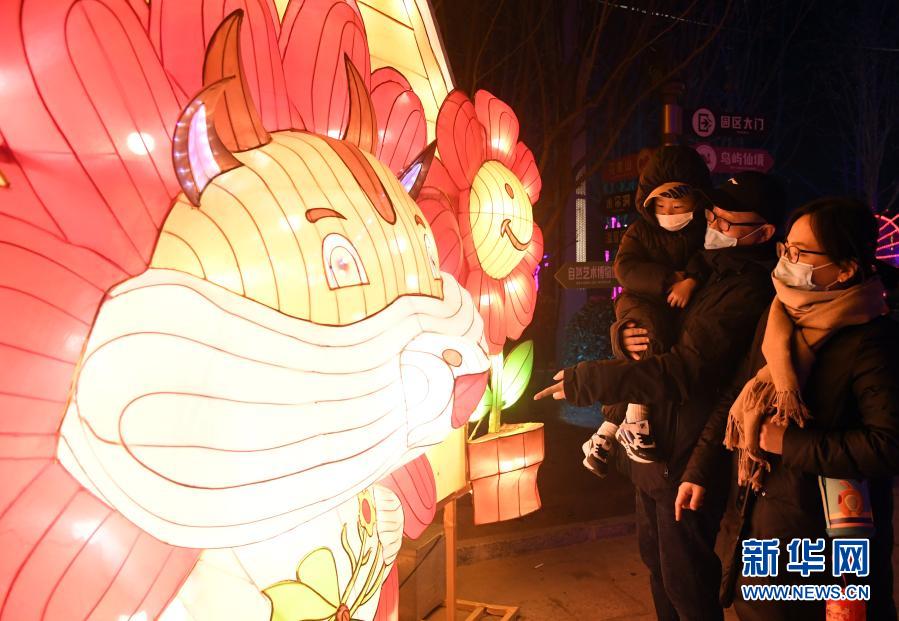 当日,市民来到位于北京市丰台区的南宫五洲植物乐园,欣赏花灯,乐享假期。