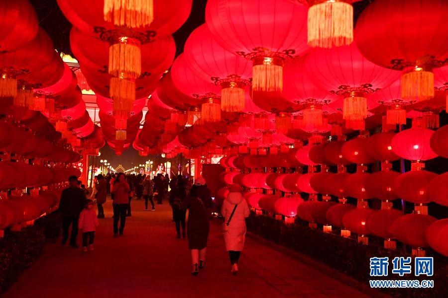 2月13日在北京南宫五洲植物乐园拍摄的红灯笼。