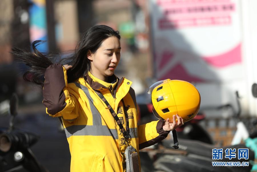 2月10日 ,美团专送骑手小月月在送餐。新华社记者 杨青摄