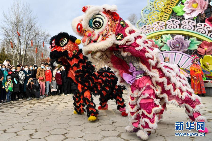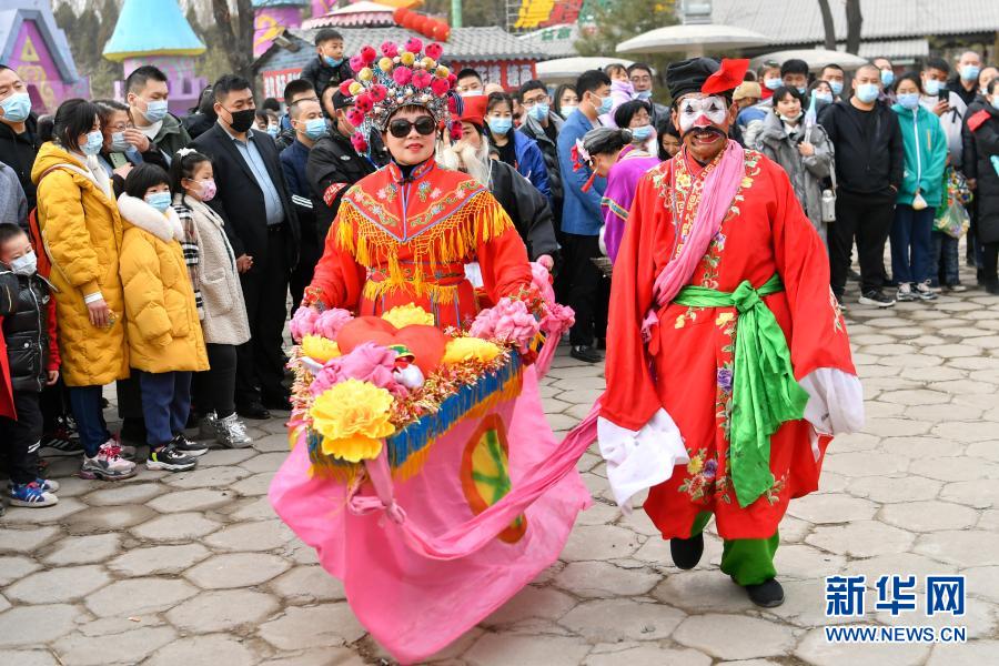 这是2月14日在山西省汾阳市贾家庄村民俗庙会上拍摄的民俗演出。新华社记者 曹阳 摄