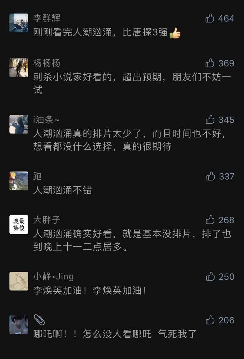 而在这狭窄的空间中,《刺杀小说家》《人潮汹涌》《新神榜:哪吒重生》的豆瓣评分都在7分以上,看过的观众中许多自发地为影片鸣不平,甘愿做起“自来水”。