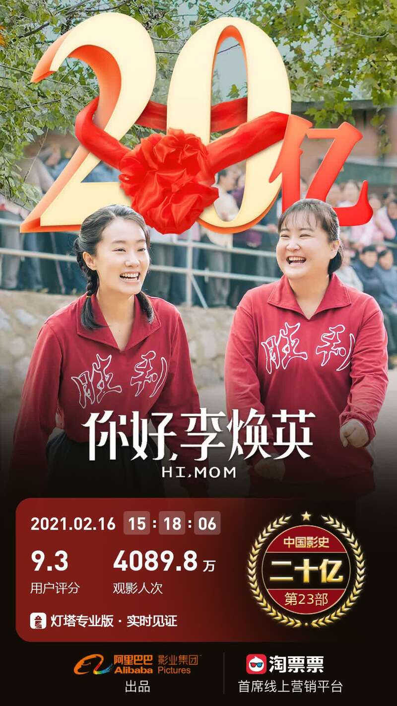 2月16日15时18分,《你好,李焕英》票房突破20亿元