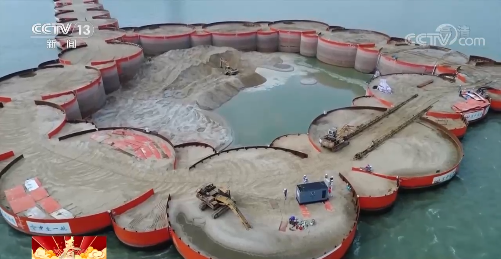 深中通道管理中心岛隧工程管理部高级工程师 刘晓锋:那里就是我们的西人工岛,以前就是一片汪洋大海,什么都没有的,我们所有人员都住在平板泊船上,晚上就着发电机的声音轰鸣声入睡,所有的物资也是从外面一点点运进来,一点点把这个岛慢慢的形成。