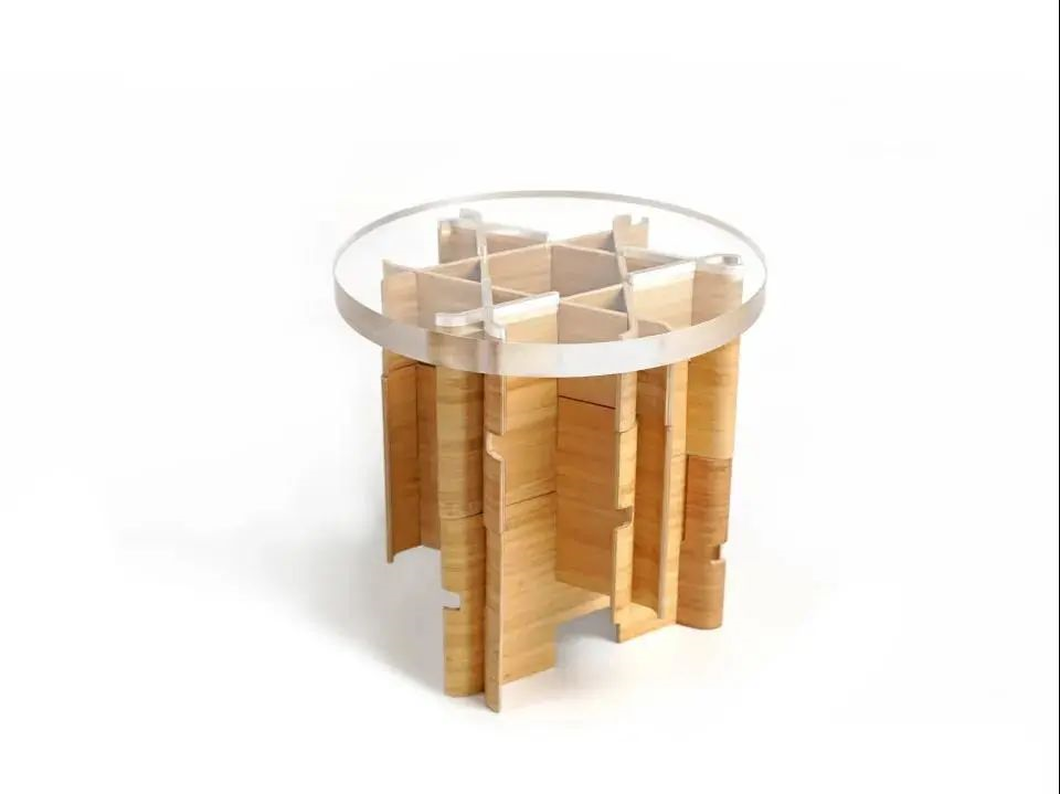 利用竹板轻便及坚硬的层压纤维结构,通过重复插接和曲面的设计语言,原承重手机的支架已能够稳定支撑人的重量,并兼具功能与造型。亚克力凳面完美卡入凳身,诚实地展现内部结构。完全由个体相互支撑而成立的「A」可以成为你最安全的支点。