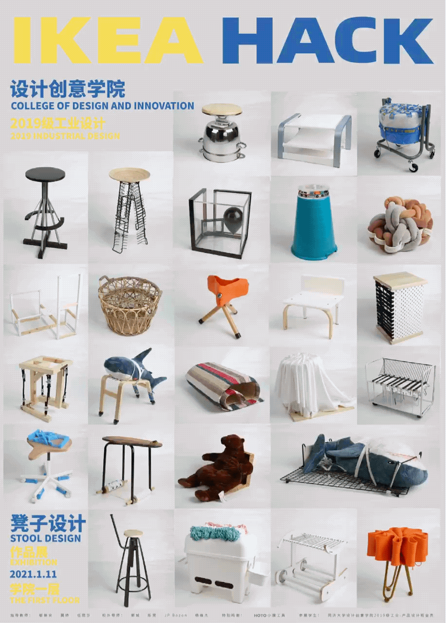 设计创意学院提出以上两个问题,并以宜家的产品作为材料库,通过拆解与再利用,要求同学们完成自己的设计创新,探讨并挖掘符合坐具设计的“黑客”精神。