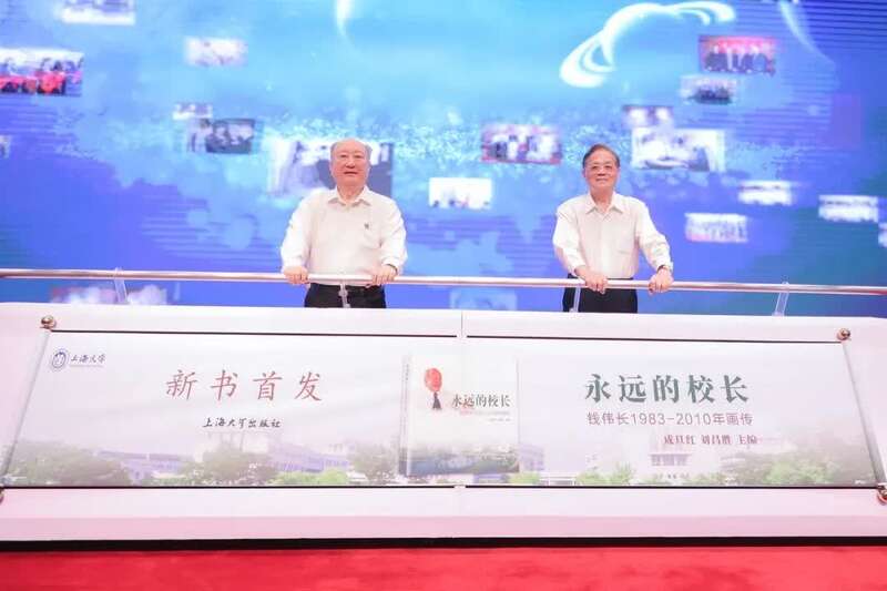 全国政协原副主席、中国工程院原院长徐匡迪,上海市政协原副主席、复旦大学原校长、上海科学技术大学原常务副校长王生洪共同为《永远的校长》新书发布推杆。