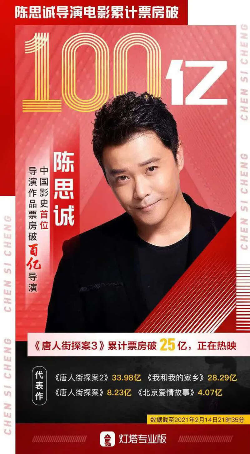 比如刘昊然当前的167亿元票房里,这两部电影就贡献了60亿元。陈思诚成为首位“百亿导演”,《我和我的家乡》近30亿元票房也统计在内——虽然陈思诚只是执导了其中一个单元。这并不只是他俩的问题,排行榜里大多数人都有类似情形。尤其对于演员来说,并非领衔主演的电影作品,统计票房时也一并纳入。