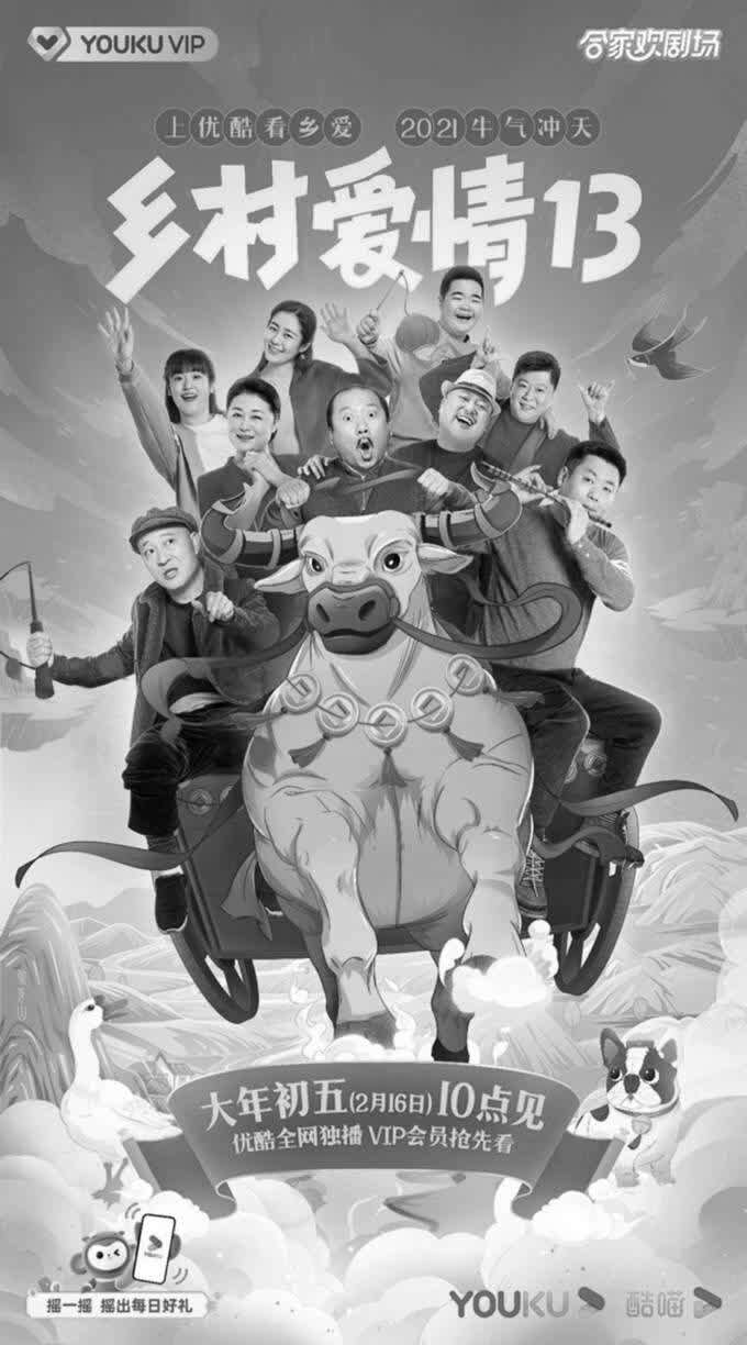 长寿剧《乡村爱情》,每年过年见,已经播到了第13季。象牙山四大家族的恩怨纠葛、“象二代”们的事业与爱情,成了很多人每年春节期间对年味的期待,好像总要看看这些陪伴多年的人们,又出啥新气象了?无论生活在东北还是广东,无论在四川重庆还是江浙沪包邮区,“乡爱”都有追随多年的老铁,尽管各地习惯不同,但“乡爱来了就是年”也成了各地剧粉的集结号。在《乡村爱情13》里,村民们不但做起了自媒体,拍摄生活段子,还开启了直播带货模式卖当地土特产。