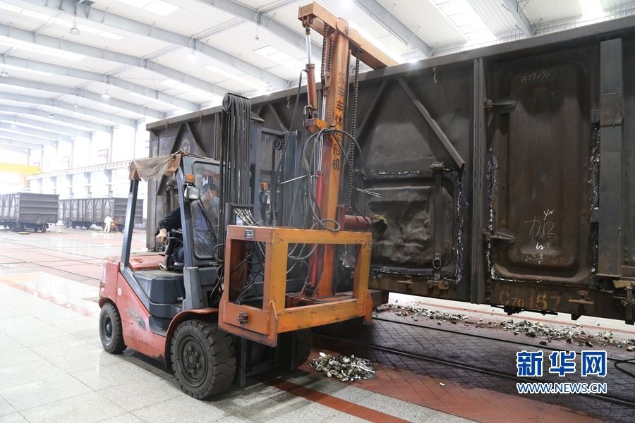 工作人员正在检修货车。新华网发(张文饶 摄)