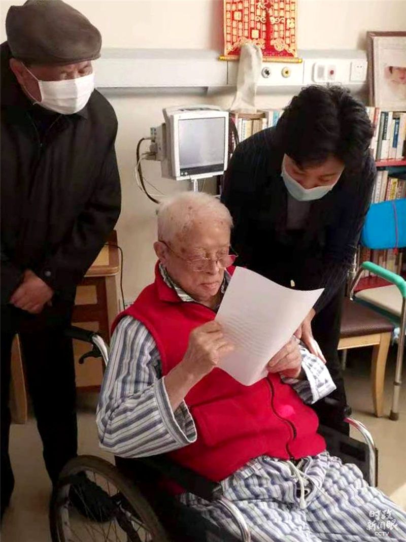 △2月18日,习近平总书记给上海市新四军历史研究会的百岁老战士们回信,感佩他们期颐之年仍心系党史宣传教育。新四军老战士施平是40余位写信人之一。(上海市新四军历史研究会供图)