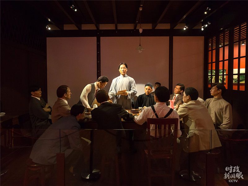 △中共一大会址纪念馆,还原“一大会议”现场的蜡像展览。