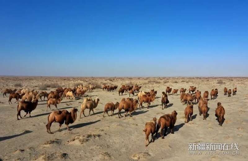 1月28日,航拍博湖县的放养骆驼