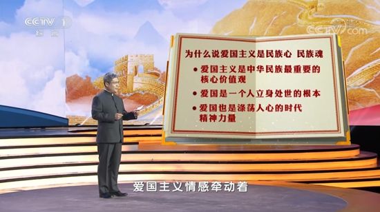 非常好!刚才这几位观众说的这些,都是习近平总书记在不同场合讲的关于“爱国”的重要论述。那么今天,就让我们围绕“爱国”这一鲜明主题,一起来学习领会习近平总书记的爱国思想,深切感受习总书记的爱国情怀。我主要谈三个问题:第一,为什么说爱国主义是民族心、民族魂?第二,新时代爱国主义的体现是什么?第三,如何培育爱国主义精神?