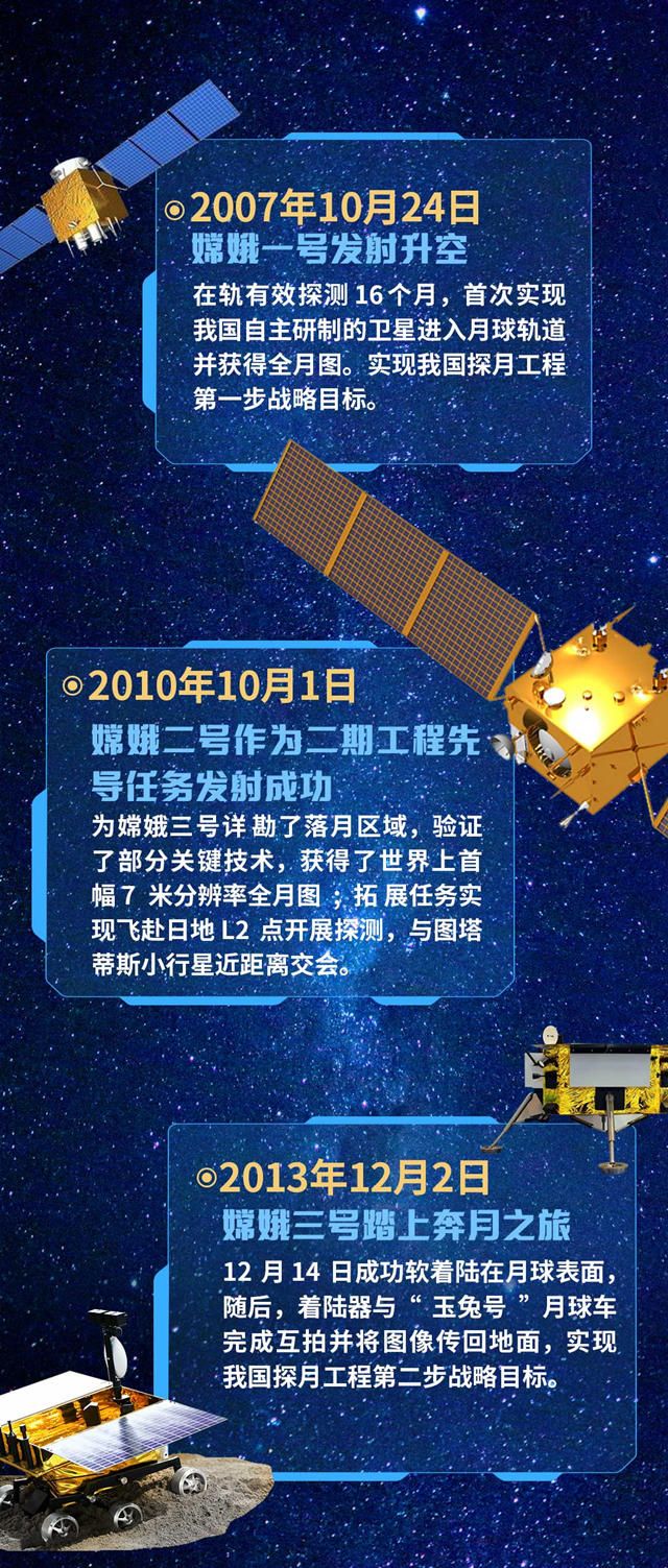 从嫦娥三号、玉兔号到嫦娥四号、玉兔二号,再到嫦娥五号,一个个中国探测器成功到访月球所勾勒描绘的,是中华民族走向伟大复兴的逐梦足迹。