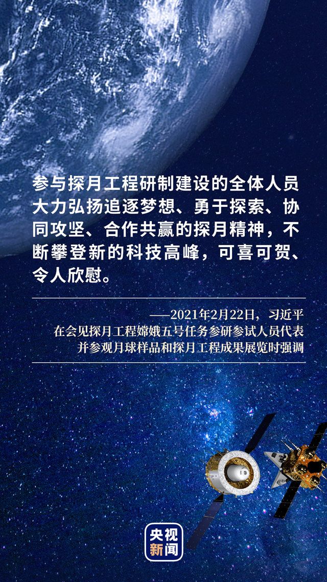 去年12月,在祝贺探月工程嫦娥五号任务取得圆满成功的贺电中,习近平首次集中概括了“探月精神”——
