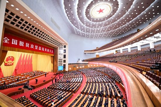 汪洋宣读《中共中央、国务院关于授予全国脱贫攻坚楷模荣誉称号的决定》。《决定》指出,为隆重表彰激励先进,大力弘扬民族精神、时代精神和脱贫攻坚精神,充分激发全党全国各族人民干事创业的责任感、使命感、荣誉感,汇聚更强大的力量推进全面建设社会主义现代化国家,党中央、国务院决定,授予毛相林等10名同志,河北省塞罕坝机械林场等10个集体“全国脱贫攻坚楷模”荣誉称号。