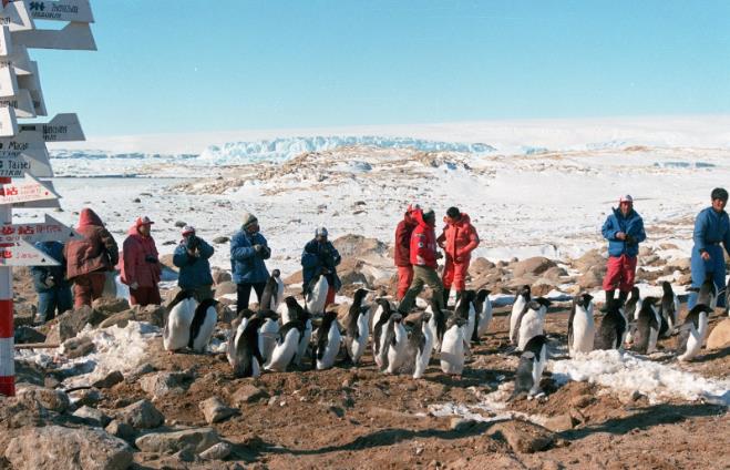 △中山站建成后,吸引了大群的企鹅前来“参观”