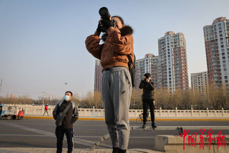 2月25日,北京市朝阳区太阳宫北街,媒体记者在路边拍摄国家乡村振兴局挂牌仪式现场。中青报·中青网记者 李峥苨/摄