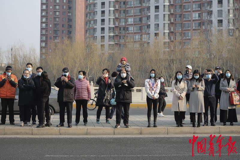 2月25日,北京市朝阳区太阳宫北街,市民在路边观看国家乡村振兴局挂牌仪式。中青报·中青网记者 孔斯琪/摄