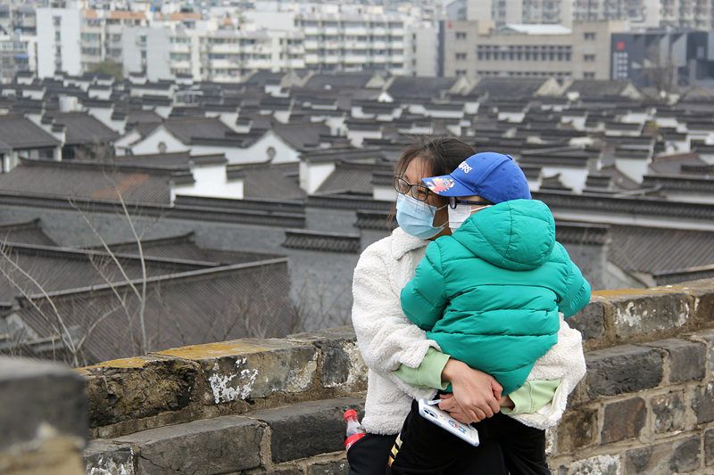 2021年2月27日,南京,在中华门城堡,前来登城墙、爬城头的市民络绎不绝。在当地有“正月十六爬城头,踏太平,走百病”的民俗。