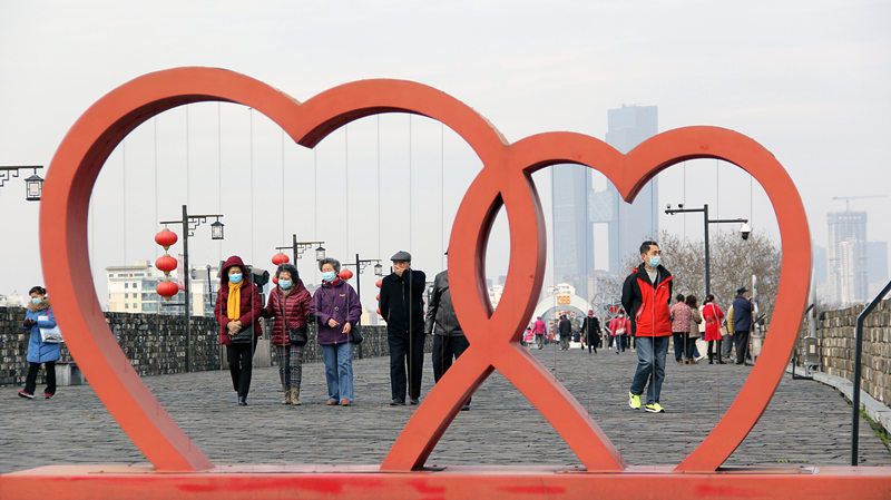 2021年02月27日,南京中华门城堡明城墙等处,众多市民沿袭传统习俗“正月十六爬城头踏太平走百病”。