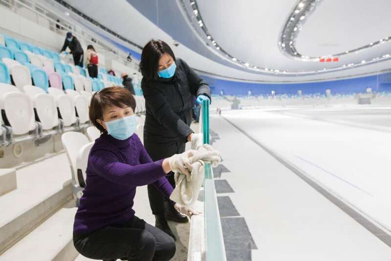 新华社北京3月4日电(记者张骁)4日下午,北京2022年冬奥会标志性场馆国家速滑馆“冰丝带”内人头攒动。来自北京冬奥组委、北京市重大项目办和北京赛区冰上场馆的冬奥工程建设者联手对场馆内外环境进行卫生清扫,为今年4月即将启幕的“相约北京”冬奥冰上项目测试活动做准备。