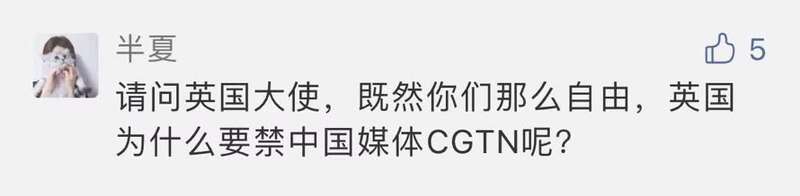 对于英国政府和人民来说,如果你们选择将中国视为朋友,我相信,中国一定会是一个热情、充满善意的朋友;但如果英国政府和人民,继续被美国极端保守派的意识形态所影响,在新疆、香港等问题上视中国为敌人,我也相信,中国一定会是一个合格的敌人。