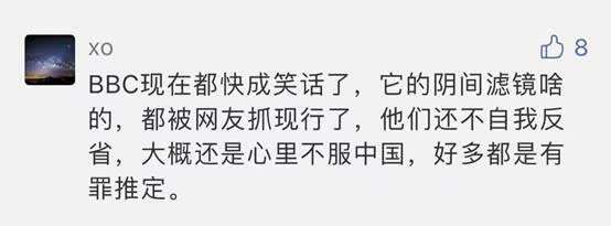 同时,中国和英国的部分网民还仔细分析了BBC的很多涉华报道,他们发现,BBC的记者和编辑,多次在涉华报道中通过使用特殊滤镜及独特的拍摄手法,让有关中国的报道画面显得阴暗和压抑。中英两国的网民还发现,BBC还涉嫌“移花接木”,在一些涉华报道中歪曲被采访对象的本意。